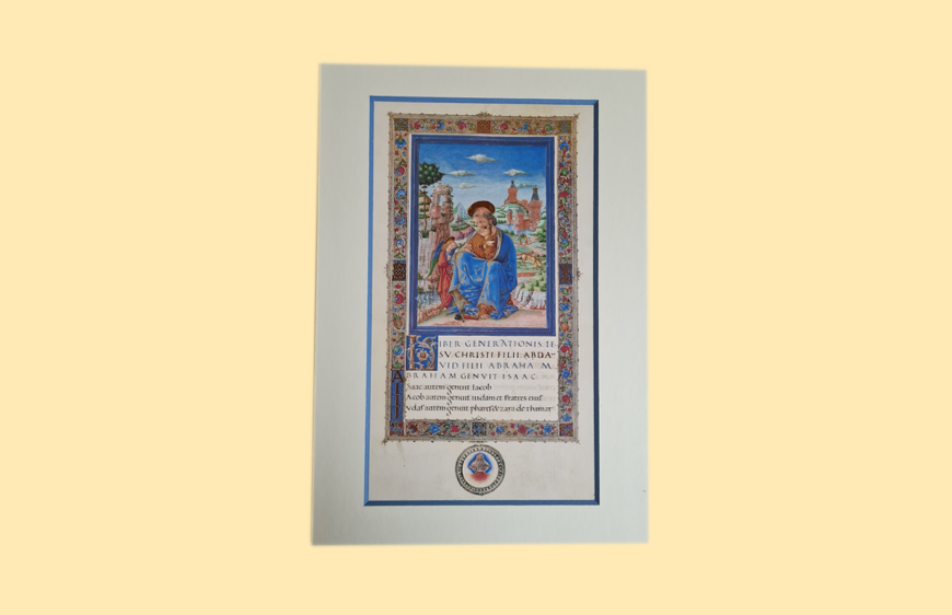 "Eindrucksvolle und eines der schönesten Renaissance-Porträst der vier Evangelistan, welche jemals geschaffen wurden. Sie stammen aus dem Evangeliar des Herzogs von Urbino, Federico da Montefeltro, das in der vatikanischen Bibliothek unter der Signatur Urbinas Latinus 10 aufbewahrt wird."