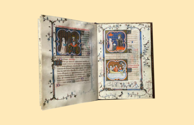 "Als zauberhaftes Stundenbuch mit besonders reicher Ausstattung wirkten die Savoy Hours stilbildend in der Geschichte der Buchmalerei und haben als Vorbild die Entwicklung der Buchgattung entscheidend vorangebracht. Auf den heute 52 erhaltenen Seiten versammeln sich 50 von dreifarbigen Vierpässen umrahmte Miniaturen und 106 Zierinitialen, die den Betrachter mit feingliedrigen Figuren vor malerischen Hintergründen begeistern. Entstanden ist die von Blanka von Burgund (1295–1326) in den 1330er Jahren in Auftrag gegebene Handschrift in zwei Abschnitten. Der erste Teil wurde wohl von dem Werkstattnachfolger des bekannten Pariser Buchmalers Jean Pucelle (um 1300-um 1334) zwischen 1334 und 1348 gefertigt und der zweite Teil zwischen 1370 und 1378 von dem Meister der Bibel des Jean de Sy hinzugefügt."